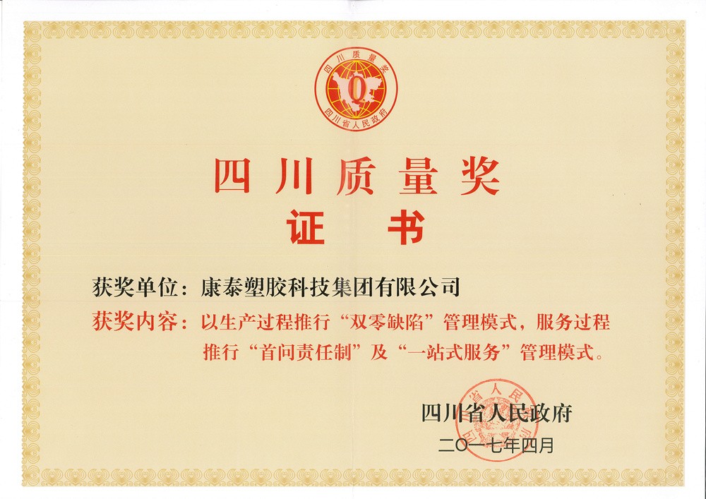作為“四川質(zhì)量獎”的獲得者,康泰塑膠科技集團從創(chuàng )立以來(lái),一直致力于對產(chǎn)品的研發(fā)升級和質(zhì)量把控,不斷滿(mǎn)足客戶(hù)的需求。在康泰,公司建立了一整套質(zhì)量管控體系,以“圍繞全球顧客、不斷改善,追求產(chǎn)品零缺陷”的質(zhì)量方針,貫徹“產(chǎn)品如人品”的質(zhì)量理念,全面覆蓋ISO9001、ISO14001、OHSAS18001三體系,實(shí)施全員、全面質(zhì)量管理,通過(guò)導入PDCA循環(huán)管理和QCC體系,嚴格質(zhì)檢把控?!皥猿植缓细裨喜贿M(jìn)廠(chǎng)”,從源頭杜絕不合格產(chǎn)品的出現;“堅持不合格的產(chǎn)品不出廠(chǎng)”,從生產(chǎn)流程上杜絕不合格產(chǎn)品的出現,確保產(chǎn)品各項質(zhì)量指標均達到或優(yōu)于國家標準,讓用戶(hù)滿(mǎn)意。