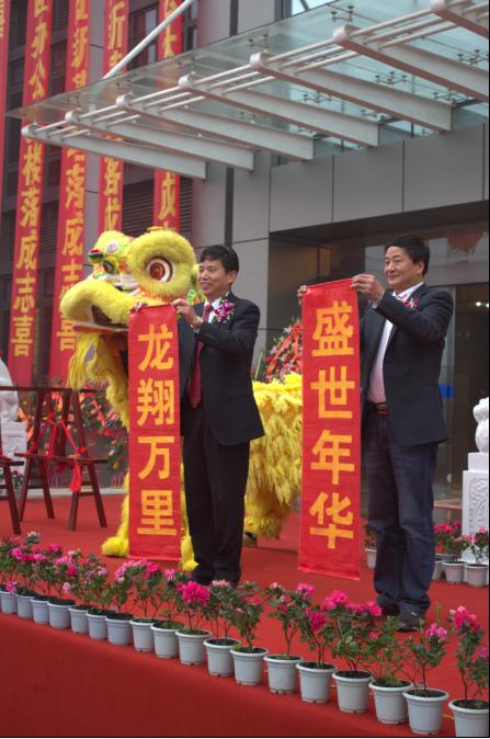 (康泰塑膠科技集團董事長(cháng)林云青先生、副董事長(cháng)葉日才先生接雄獅恭賀對聯(lián))