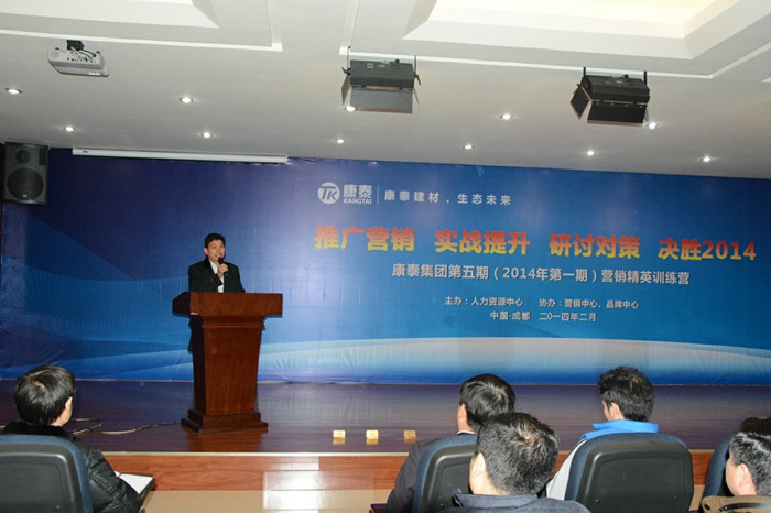 ??? 律回春暉漸,萬(wàn)象始更新。辭別新春佳節,全體康泰員工帶著(zhù)歡度節日的喜慶和備戰2014的充分準備回到了公司,投身到自己的崗位之中,開(kāi)始了新一年的緊張工作。一年之計在于春,隨著(zhù)新一年工作的開(kāi)展,由人力資源中心主辦,營(yíng)銷(xiāo)中心、品牌中心協(xié)辦的集團公司第五期以“推廣營(yíng)銷(xiāo)、實(shí)戰提升、研討對策、決勝2014”為主題的營(yíng)銷(xiāo)訓練營(yíng)也在緊鑼密鼓中拉開(kāi)序幕,此次訓練營(yíng)為期5天,分布在全國各地的一百余名集團公司營(yíng)銷(xiāo)人員紛紛回到總部,參加此次培訓。