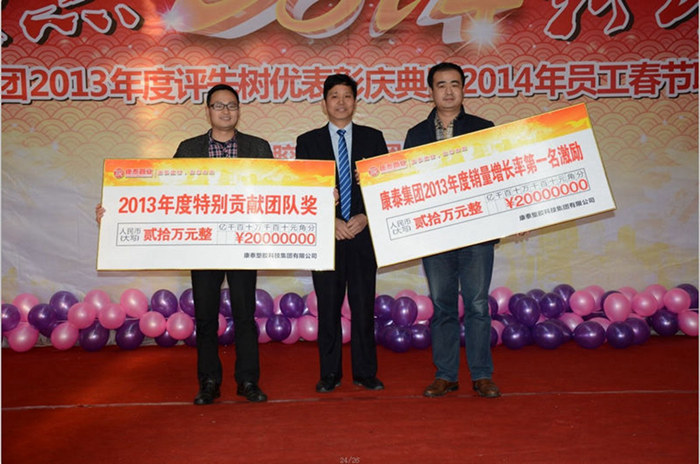 ??? 會(huì )議最后,集團董事長(cháng)兼總裁林云青先生發(fā)表新年寄語(yǔ),林總裁首先對獲獎的員工表示了祝賀,對還有很多沒(méi)有獲獎的默默付出的優(yōu)秀員工、對全體康泰員工2013年付出的辛勤努力表示感謝,林總裁表示:“時(shí)光飛逝,白駒過(guò)隙,2013年已經(jīng)過(guò)去,在白熱化的市場(chǎng)競爭和房產(chǎn)打壓的影響下,我們全體康泰人不斷探索,尋找屬于我們的方向,我們公司全力以赴,建立了獨特的推廣營(yíng)銷(xiāo)模式,通過(guò)一區一策的營(yíng)銷(xiāo)管理理念,通過(guò)全員的共同努力,全面完成了20%增長(cháng)的年度經(jīng)營(yíng)目標,并基本全面完成公司的各項指標,這是公司全體員工共同努力才取得的結果,我代表公司股東、董事及管理團隊衷心的感謝你們,希望全體康泰人在新的一年里,繼續保持務(wù)實(shí)勤儉、高效干練的先鋒工作作風(fēng),在新的一年里實(shí)現更大突破,取得更大成功?!?br>